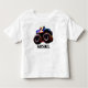 Este design de diversão mostra um caminhão monstro azul dirigindo sobre o número dois.
