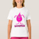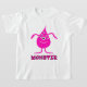 Monstro rosa engraçado isolado com seis olhos e texto MONSTER