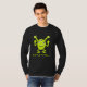 Monstro verde engraçado isolado com três olhos e mãos para cima, SMS GO GO GREEN