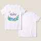 Montanha Rocky A Aventura Começa A Camisa T. O design apresenta uma paisagem de natureza selvagem pintada, azul e verde, com pinheiros de aquarela, pássaros e montanhas.