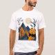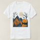 Uma paisagem de montanha geométrica sob uma lua de cheio com árvores estéreis e morcegos voadores. Criado a capturar uma vibração assustadora, mas mínima do Halloween, perfeita para posters, t-shirts e decoração doméstica.