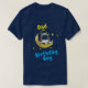 Moon Adventure Pai dos recursos da t-shirt Birthday Boy Inclui um astronauta com texto, Pai do Birthday Boy. O astronauta com dedos presos em sinal de paz está amontoado numa lua crescente. O texto pode ser mudado como desejado, e o "Birthday Boy" também pode ser modificado. Ajude seu astronauta a comemorar!