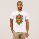 Esta design combina duas coisas muito boas em uma. É uma mistura de morangos e flores e parece adorável. O design funciona bem e é único. Este design de morangos e flores parece excelente nesta camiseta masculina. Perfeito para si mesmo ou como presente
