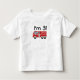 Uma ilustração adorável do caminhão de bombeiros vermelhos aparece nesta camiseta de terceiro aniversário.