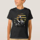 Silhueta de um motociclista em uma motocicleta à luz do pôr do sol com texto personalizado/personalizado no verso