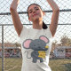 Um rato giro, no estilo cartoon, comendo queijo. Esta design parece muito eficaz nesta Camiseta de Meninas