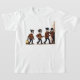 Quatro personagens cartunistas vestidos de roupas riscadas a preto e laranja parecem estar esgueirando, com um segurando um saco. O fundo é uma simples cinza, enfatizando seus movimentos e expressões.