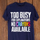 Camiseta Muito Ocupado para Explicações, Não Há Crayons Dis