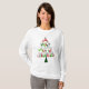 A árvore do Feliz Natal encheu-se com os cartões de natal em verde e em vermelho e cobertos na neve.