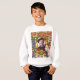 Zoe SINGS para Wagner! A obra de arte original de ZoeSPEAK sobre esta camiseta apresenta um retrato do compositor Richard Wagner, vestindo uma boina, em um quadro de ornamentado de ouro. O retrato pende sobre um fundo amarelo de papel de parede com listras e bandas de tomate vermelho. Uma foto de Zoe o Cachorro Bilíngue está em frente ao retrato. O texto diz Muito Wagner, em inglês e francês.