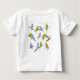 Esta Camisa-Bebê apresenta muitos periquitos bonitos de todas as cores sobre fundo azul claro - pintura a aquarela digital. Para todos os amantes de pássaros e crianças! Lindo ideia de presente para chá de fraldas, novo bebê nascer, aniversário e muito mais. Texto e estilo personalizados.