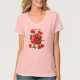 Camiseta de mujer con diseño de unas rosas rojas con un poema sobre rosas rojas.