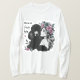Uma mulher abraça carinhosamente um poodle enquanto veste flores na cabeça.