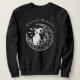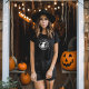 design de "Mulher Bruxa" com uma bela bruxa em uma lua crescente com morcegos voadores.