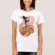 Um gráfico de uma mulher fazendo yoga contra um fundo brilhante. Esta design parece muito eficaz nesta Camiseta das Mulheres