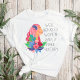 "Mulheres Bem Comportadas Raramente Fazem História" Cita Texto com a mulher de cor-de-água de arte folclórica com cabelo rosa e flores rosa e azuis.