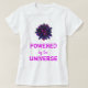 Este é um grande t-shirt para as mulheres que são espiritual inclinados e/ou igualmente praticam a ioga. Esta camiseta preta das mulheres tem uma esfera de cristal cor-de-rosa e roxa azul no fundo branco. As palavras "pstas pelo universo" são um lembrete a respeito da fonte de nosso deus dado o poder criar a vida onde nós queremos.