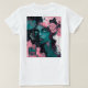Composición más expresiva y abstracta: rostro femenino con contrastes bicolor, trazos fluidos, manchas y líneas que generan movimiento y profundidad. La flor central actúa como sello botánico de la colección, manteniendo la estética neon teal & pink para una línea uniforme en cojines, sudaderas y pósters.