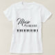 Esta design é para amantes da música jovens e velhos. Esta camiseta apresenta um design simples e elegante com um teclado de piano. Acima do teclado, o texto diz "Música é uma coisa de beleza". A parte de trás da camiseta tem uma versão menor do texto, perto da linha do pescoço.