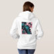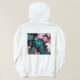 Composición más expresiva y abstracta: rostro femenino con contrastes bicolor, trazos fluidos, manchas y líneas que generan movimiento y profundidad. La flor central actúa como sello botánico de la colección, manteniendo la estética neon teal & pink para una línea uniforme en cojines, sudaderas y pósters.