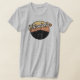 Mvskoke soletrando Muscogee T-shirt com representação de Okmulgee Mound e gradiente de pôr do sol.