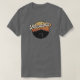 Mvskoke soletrando Muscogee T-shirt com representação de Okmulgee Mound e gradiente de pôr do sol.