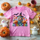 The baby girl's t-shirt is a true work of art to celebrate her first Halloween. On the front, it features a charming little witch in a 3D design, surrounded by pumpkins and bats, creating a magical and playful atmosphere. Just below the little witch is a sign that says "My First Halloween," which adds a touch of sweetness and excitement. The attention to detail in the three-dimensional design allows the little witch to appear to come to life, while the bats and pumpkins create a festive and mysterious atmosphere. On the back of the shirt, the sign "My First Halloween" stands alone, remembering the special moment that this garment commemorates. This t-shirt is perfect for your little one to join in the Halloween fun while looking adorable.