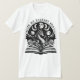A design retrata uma cena mística de uma ascensão de dragão de um livro, cercada por um céu noturno com luas e estrelas. A design é uma ilustração a preto e branco com um sentimento dramático e fantástico. Um dragão grande e detalhado sai das páginas de um livro aberto. O dragão é representado por escalas, asas, e uma expressão feroz. O dragão é colocado sobre um fundo de um céu noturno cheio de estrelas e luas. Há cinco círculos de diferentes tamanhos representando as luas, duas luas em crescente e três luas em cheio, todos colocados contra um campo de estrelas. O livro está aberto e suas páginas são enroladas. Em ambos os lados do livro estão flores, possivelmente lírios, e uma espiral de fumaça ou nuvens. O efeito geral da ilustração é escuro e misterioso, com um sentido de magia e maravilha. O uso de preto e branco aumenta a sensação de mistério e escuridão. É provável que a imagem evoca sentimentos de admiração e admiração no espectador, inspirando-os a imaginar o mundo fantástico dos dragões e da magia.