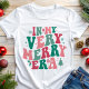 Celebre as festas de fim de ano com estilo usando esta camiseta retrô de Natal "In My Very Merry Era"! Perfeita para quem está curtindo a temporada festiva, este design combina uma frase divertida e na moda com uma tipografia retrô vibrante em cores natalinas. Se você está aproveitando festas de Natal ou espalhando alegria, esta camiseta traz vibrações alegres para o seu guarda-roupa de Natal. É uma maneira divertida de mostrar que você está totalmente imerso no espírito natalino durante a sua própria "era alegre". Uma ótima escolha para entusiastas do Natal ou como um presente único para quem ama moda festiva e trendy!