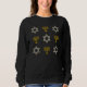 Na moda HANUKKAH, que mostra ouro falso e ESTRELA prateada DE DAVID e MENORAH em um padrão ladrilhado. Suéter Chanukah ideal para homens e mulheres nas comemorações de Chanucá e é adequado para qualquer evento temático judeu. Escolha entre uma ampla seleção de cartões e presentes de Hanukkah por Designs Bereanos.