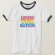 Esta design de camiseta mostra uma mensagem de unidade e força em um vibrante gradiente multicolorido. As palavras "Unidos", "Orgulho" e "Nação Forte" fluem juntas sem interrupções, com cada palavra em transição para a próxima cor. Esta design é perfeita para aqueles que querem celebrar a unidade e promover um forte sentimento de orgulho nacional!