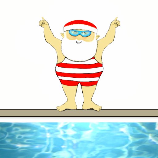 Camisa de natação criativa de Natal e linha de natação engraçada, com nadador de Papai Noel na piscina.