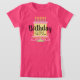 Pinks verdes e amarelos tornam este bolo de aniversário super doce. Dê a sua aniversariante a atenção que ela deve e faça seu dia especial com esta camiseta de aniversário rosa e caprichosa.