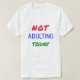 "NÃO ADULTAR HOJE" é o texto humorístico desta camiseta unísexa. A inscrição está em cores vermelho, azul e verde claras e tem uma face rabiscada no 'O' de NOT.