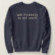 Esta é a tipo de mensagem que normalmente se põe num cão para as pessoas não tentarem acariciá-lo e serem mordidas, por isso tê-la numa camisola para uma pessoa usar é engraçado, mas também transmite a mensagem de que provavelmente você quer ser deixado sozinho.