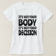 Design de texto com a citação "Não é o seu corpo Não é a sua decisão". Defenda a dignidade humana, a igualdade de gênero, os direitos das mulheres e a autodeterminação.