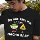 Esta design de camiseta é para todos os idiotas que amam nachos com uma carga picante de molho divertido e molho de humor! Apresentando uma citação engraçada "não me beije se eu for um bebê nacho", com gráficos fofos sorridentes de um molho nacho e mexicano verde. Pode ser uma forma excelente e engraçada de celebrar a festa de cinco de mayo, de mostrar ao seu lado introvertido para dizer que não sou feio, numa engraçada receita de humor delicioso.