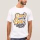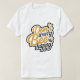 Esta camiseta branca apresenta as palavras "Não se Preocupe" empilhadas acima de "Bee Happy" numa fonte lúdica, ligeiramente angustiada, com um enchimento cor de laranja quente e um contorno preto. Uma pequena e fofa abelha de desenho animado com listras amarelas e pretas e asas translúcidas é incorporada ao design, acrescentando um toque de choradeira à mensagem positiva.