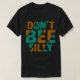Esta camiseta preta apresenta a frase "NÃO BEE BOBO" em um design ousado e empilhado usando letras cor de rosa e laranja. As linhas diagonais cortam o texto, adicionando uma sensação dinâmica e ligeiramente delicada à mensagem divertida.