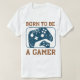 Um design ousado e elegante com dois controladores de jogos azuis com textura em apuros, enquadrado por um contorno retangular. A frase "Nascer de ser um jogador" é exibida em letras laranja grandes e robustas, criando um olhar legal e poderoso.