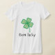 A camiseta feminina "Nascer sortudo" é perfeita para Ruas. Dia de Patrick. A t-shirt também se coordena com roupa e acessórios para bebês e pais da nossa coleção irlandesa, permitindo-vos montar um presente de chá de fraldas muito divertido.