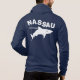 Uma imagem minimalista de uma silhueta de tubarão acompanhada pelas palavras "Nassau (as Bahamas)", evocando a aventura e a emoção de explorar um dos principais locais de mergulho de tubarões do mundo. Este simples, mas notável, desenhar de atenção à diversidade da vida marinha de Nassau e ao atrativo alento do seu mundo subaquático.