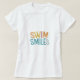Esta design de camiseta faz uma abertura com a frase "Sorrisos de Natação" escrita em uma fonte legal e multicolorida. As cores lúdicas evocam a alegria de nadar e certamente trazem um sorriso a todos que o veem.