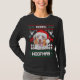 Pastor australiano com o T do X-Mas do chapéu do papai noel que deseja lhe Woofmas alegre. Presente do Natal do divertimento para o pai, a mamã, o filho, a filha, o irmão, a irmã, a tia, o tio, a avó, o vovô, o qualquer um na família ou um amigo. Woof. Wooof. Woof. Latido. Presente perfeito do Natal para proprietários e fãs especialmente australianos do pastor dos amantes do cão. O t-shirt caracteriza o teste padrão feio típico do Natal (estilo feio do X-Mas da camisola). Camisa do proprietário T do cão. Presentes para proprietários do cão. Presentes para proprietários australianos do pastor.