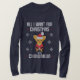 Este cão tem um suéter feio que mostra um visto chihuahua com um terno de papai noel com o ditado "tudo o que eu quero para o Natal é um chihuahua".