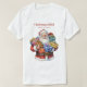 T-shirt com uma bela imagem de Natal. Um Papai Noel tradicional em sua roupa vermelha clássica. Seu cheio de presentes. Pronto para trazer presentes para todos.