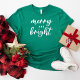 Uma festa de Natal festiva para mulheres com tipografia moderna de escrita em minúsculas com "Feliz e Brilho" dizendo. O texto branco e o estilo de camisa verde podem ser modificados.