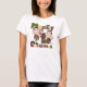 Duas vacas em bonés de meia, presentes do Natal, luzes do feriado, bastões de doces, e texto vermelhos que lê de "o Natal Mooey" em t-shirt do feriado, canecas, cartões, etiquetas, sacolas, pulsos de disparo de parede, caixas da lembrança, ornamento, chaveiro, e outros roupa e presentes bonitos do feriado do tema da vaca.