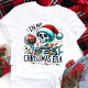Camiseta Natal Diversão de Esqueleto de Menina Festa de Fim