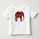 O t-shirt branco das crianças com uma imagem de um elefante floral do batik vermelho de Christmassy com o "Bali" imprimiu através dele no roteiro do ouro. Veja a coleção inteira do roupa da retirada de Bali na seção ESPECIAL dos favoritos para festas dos TOQUES |.